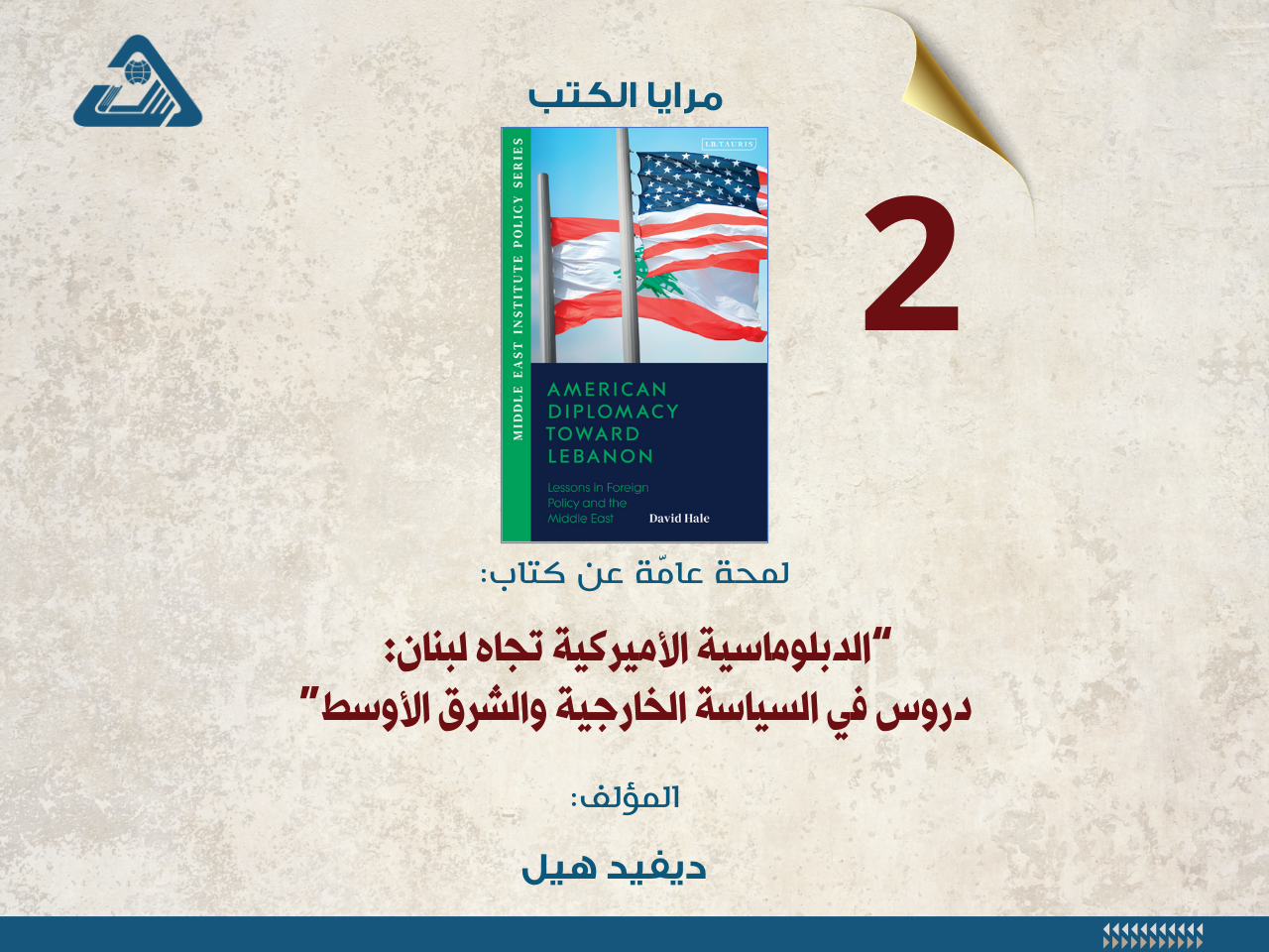 مرايا الكتب "الدبلوماسية الأميركية تجاه لبنان: دروس في السياسة الخارجية والشرق الأوسط" فيديوغراف | مديرية المعلومات / 2025-12-29 المزيد..