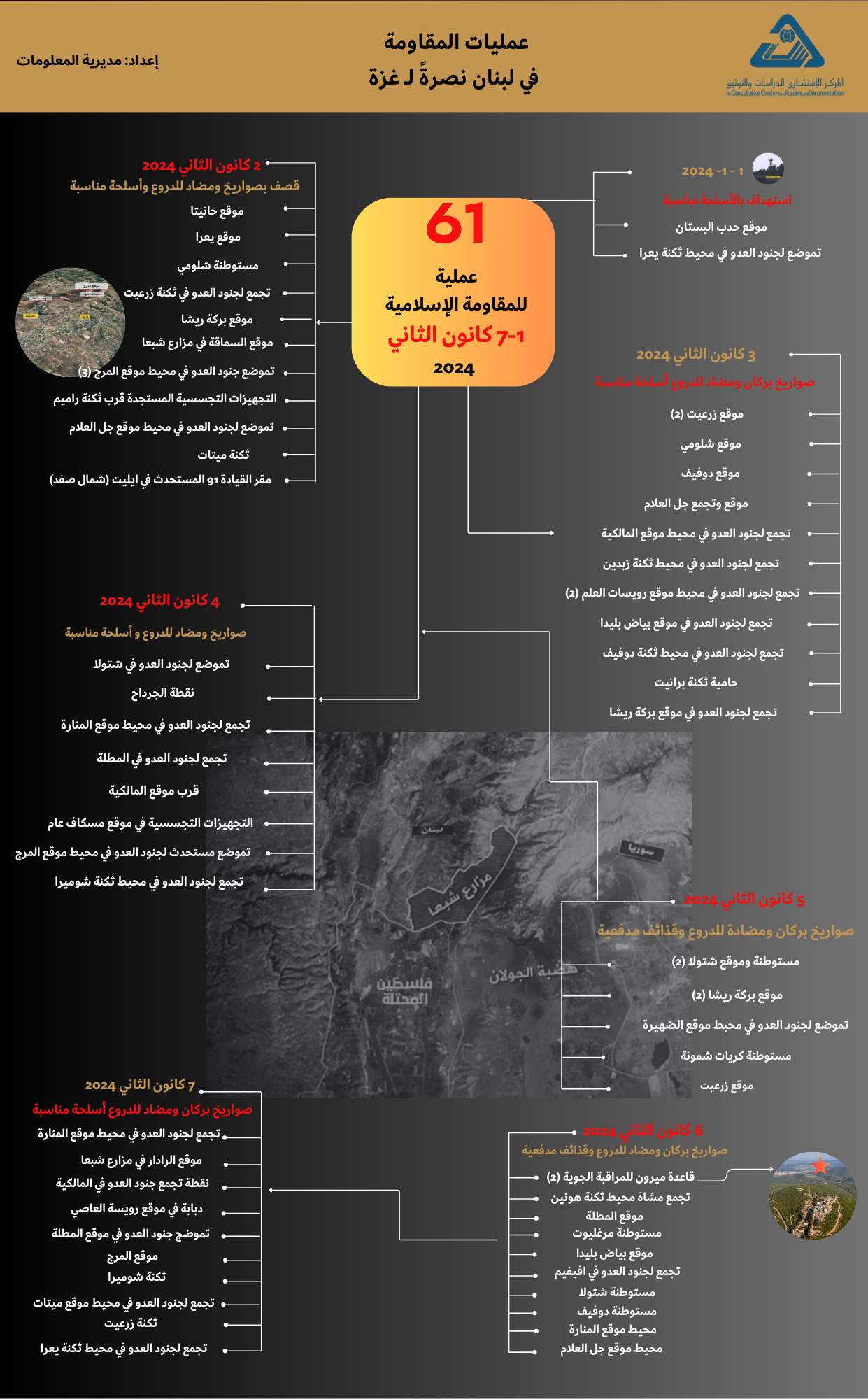 مديرية المعلومات • 2024-01-15 • في انفوغراف • تحميل الملف انفوغراف | عمليات المقاومة في لبنان نصرة لـ غزة - إعداد مديرية المعلومات -من 1 إلى 7 كانون الثاني 2024 إنفوغراف يحاكي عمليات المقاومة في لبنان نصرة لـ غزة - إعداد مديرية المعلومات - من 1 إلى 7 كانون الثاني 2024 تحميل الملف مديرية المعلومات المقال السابق انفوغراف | عمليات المقاومة في لبنان نصرة لـ غزة - إعداد مديرية المعلومات - من 8 إلى 14 كانون الثاني 2024 المقال التالي انفوغراف | عمليات المقاومة في لبنان نصرة لـ غزة - إعداد مديرية المعلومات -من 26 إلى 31 كانون الأول 2023 مواضيع ذات صلة: استراتيجية الأمن القومي لإدارة ترامب قراءة المزيد رؤية انقرة لسوريا: بين مكافحة الإرهاب ومواجهة "إسرائيل" - بين 14 - 28 آب 2025 قراءة المزيد المقاومة خيار غالبية اللبنانيين - آب 2025 قراءة المزيد